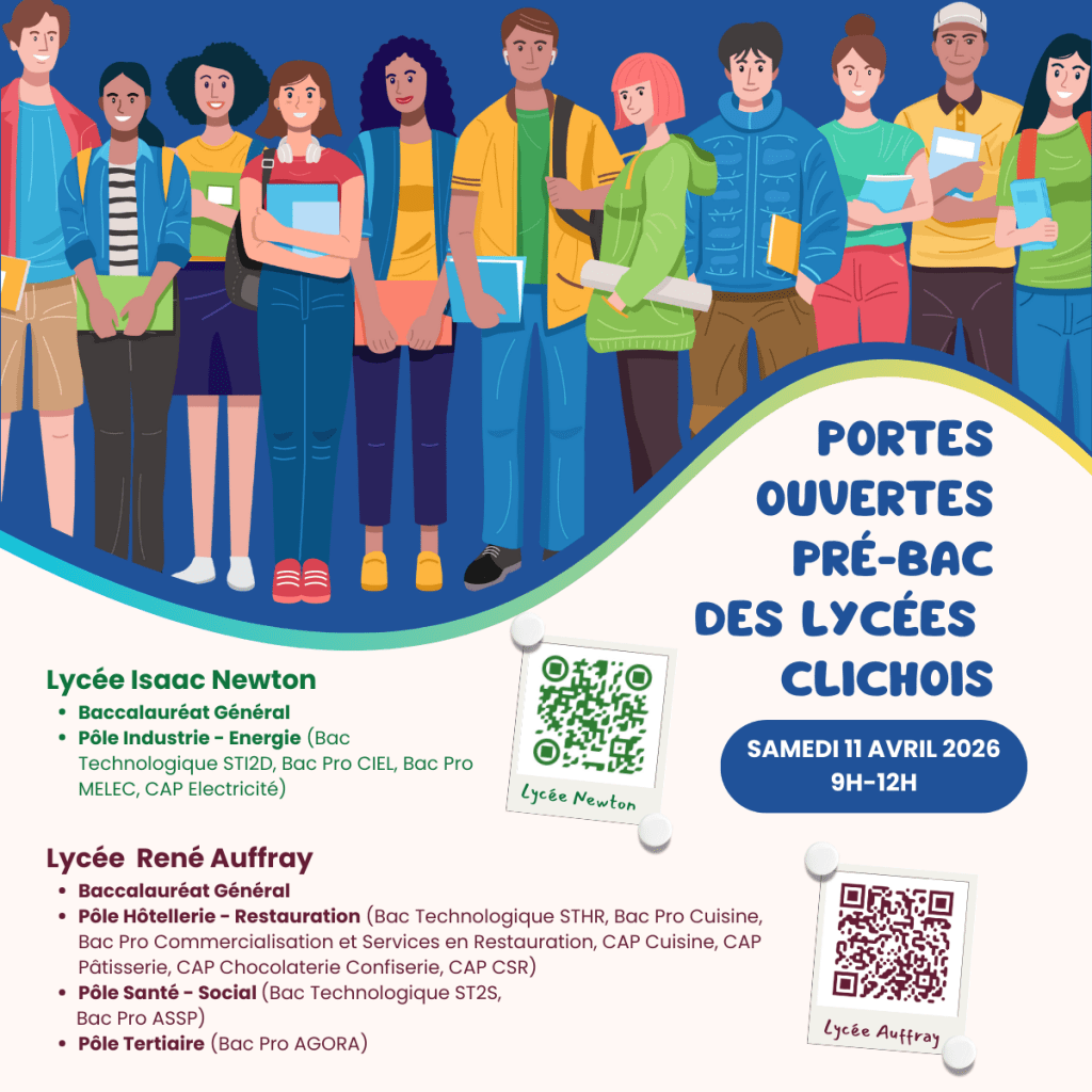 Les Portes Ouvertes Pré Bac des deux lycées clichois se tiendront le Samedi 11 avril 2026.