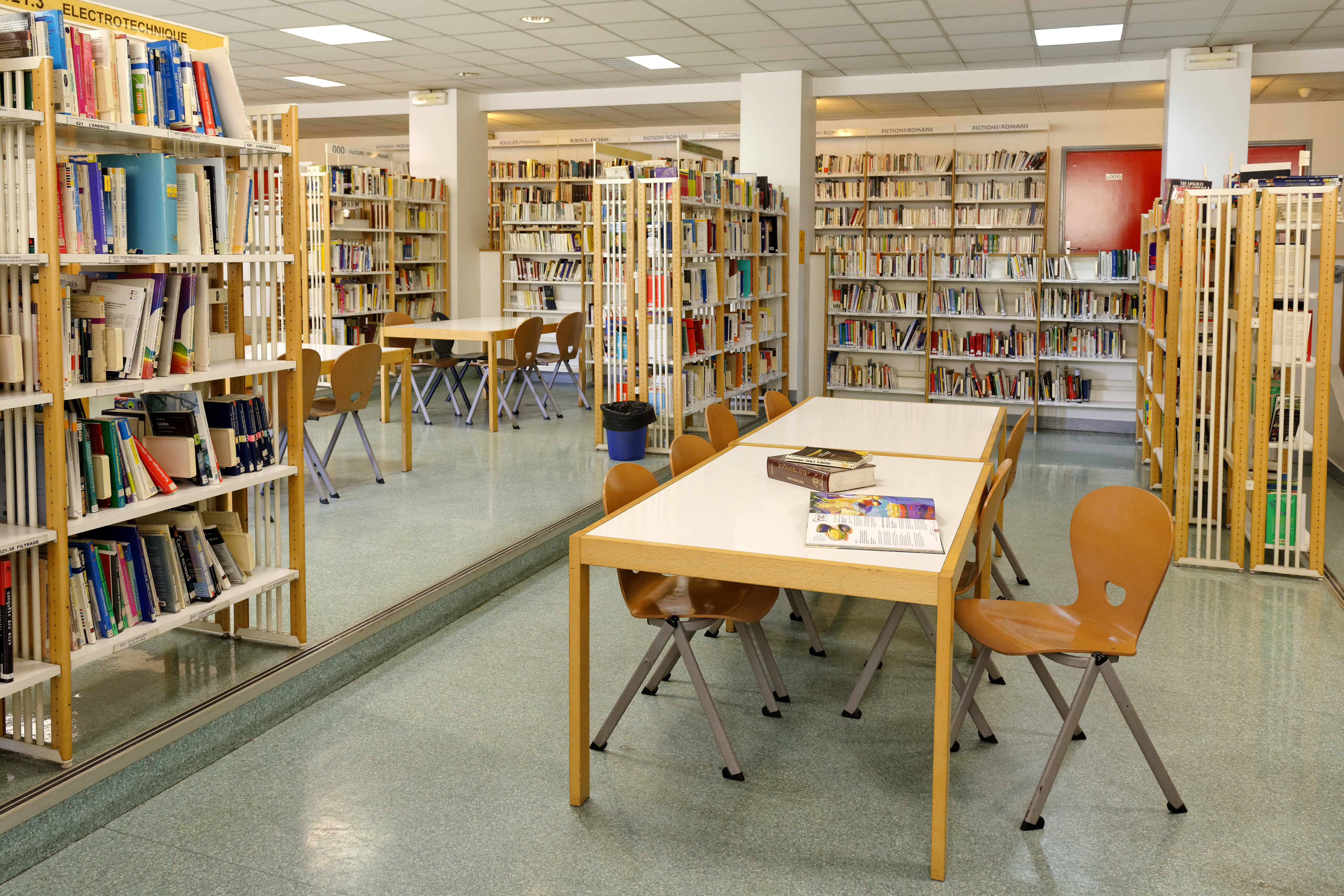 Le CDI dispose d’une grande salle de lecture de 55 places assises, qui comprend : un espace informatique doté de 6 ordinateurs et d’une imprimante, 7 tables de travail, un kiosque de périodiques de 25 titres de journaux et revues, et surtout un espace de lecture loisirs avec du mobilier confortable.