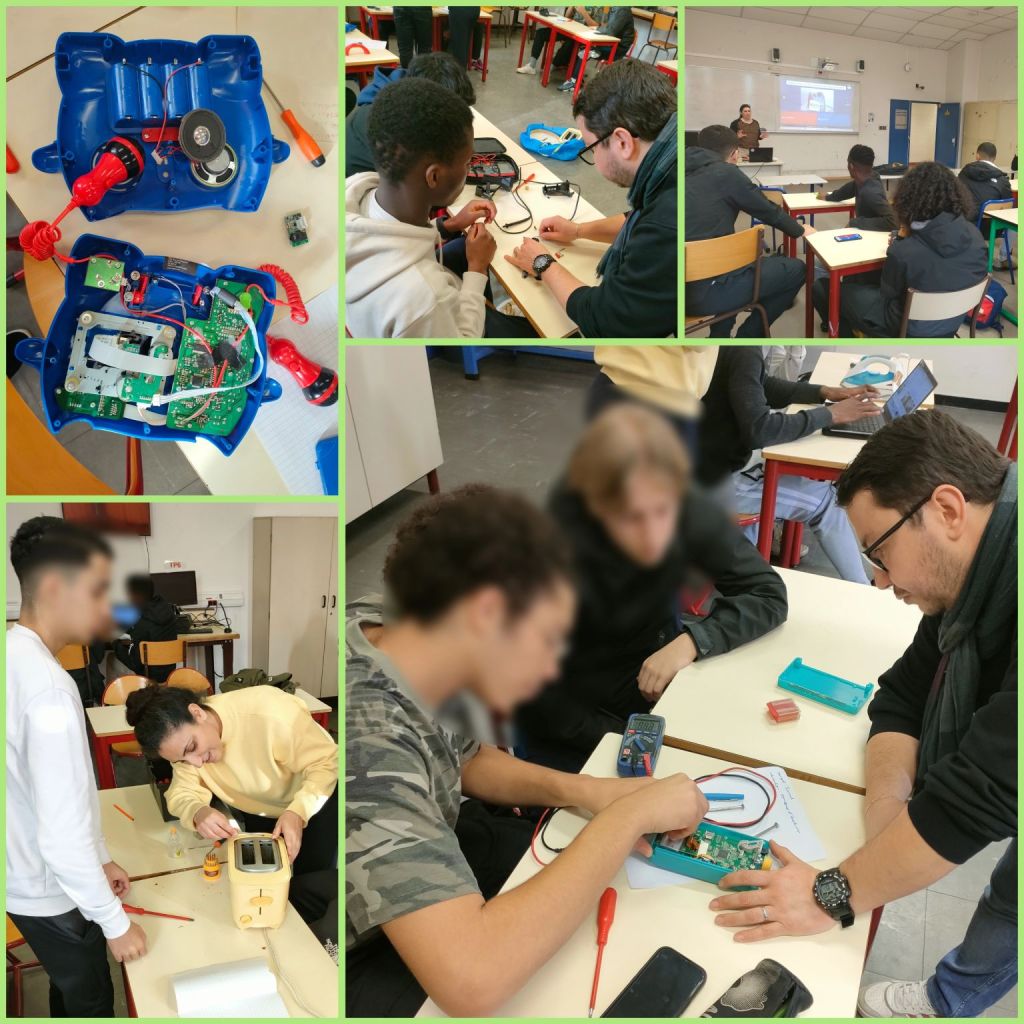 Les élèves de Bac Pro Systèmes numériques (aujourd’hui Bac Pro CIEL) ont été sensibilisés à l’économie circulaire et à la réparation des équipements électriques et électroniques en collaboration avec l’association clichoise La Société du Partage: un peu de théorie mais aussi de la pratique avec un atelier Repair Café qui a permis aux lycéens de prendre confiance en leurs capacités de diagnostics et d’application de leurs savoirs!
