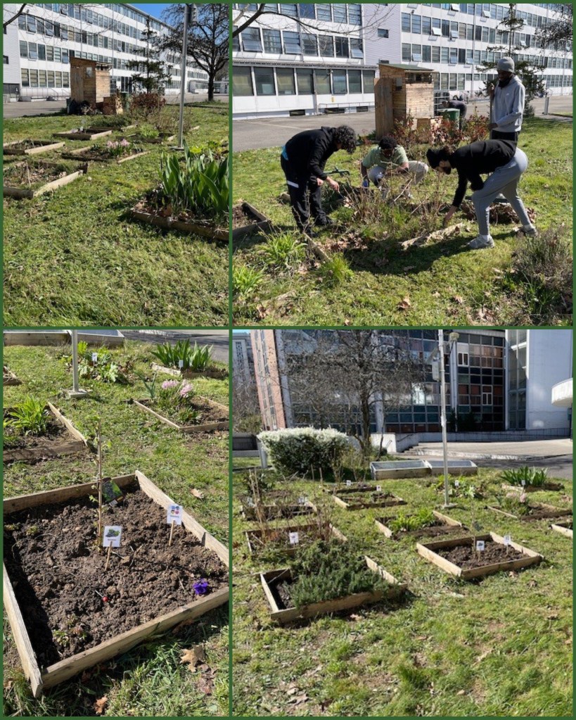 Une belle journée ensoleillée a permis aux étudiants de BTS MS1A et CIEL2, ainsi qu’à Sahla du secrétariat des élèves, de jardiner au potager. En ce début de Printemps 2025, il fallait nettoyer, désherber, tondre, planter … le résultat est impressionnant. Merci à eux pour leur participation.